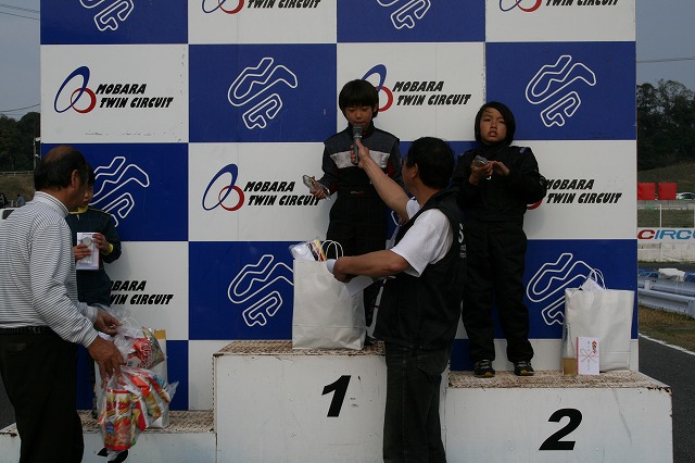 表彰台 「あれッ とれない」 「へっへっ やったネ!」